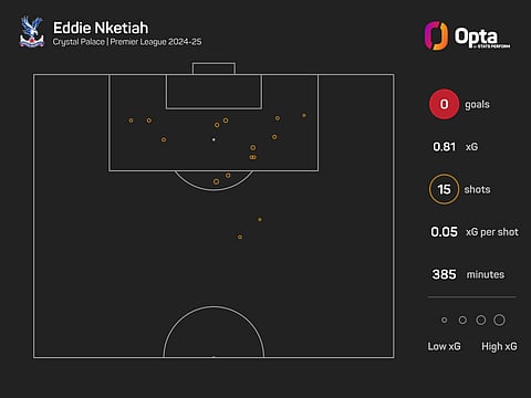 Since scoring a hat-trick against Sheffield United in October 2023 for Arsenal, Palace striker Nketiah has played 804 minutes in the Premier League without finding the net.