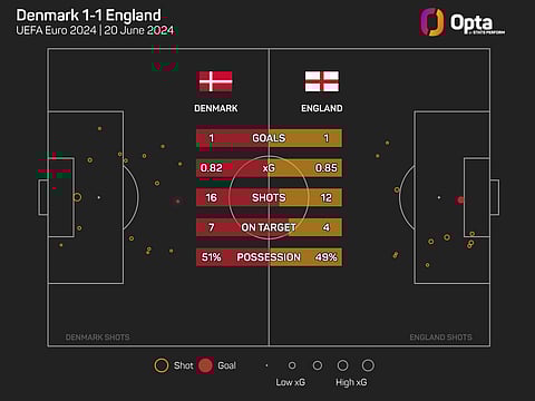 England have attempted just 17 shots – seven of them on target – in their two games at Euro 2024, amassing a total of 1.85 expected goals (xG).