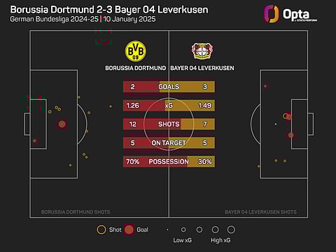 Leverkusen were made to work for their win, registering just one shot on target in the second half with Dortmund in the ascendency to try and find the leveller late on.