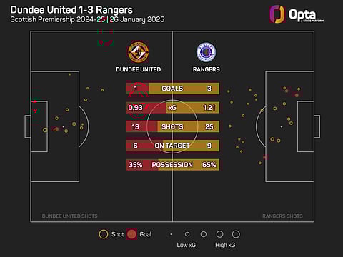 Rangers had been winless in their last four away league games heading into the contest at Tannadice Park, but put on a dominant display to close the gap to leaders Celtic.