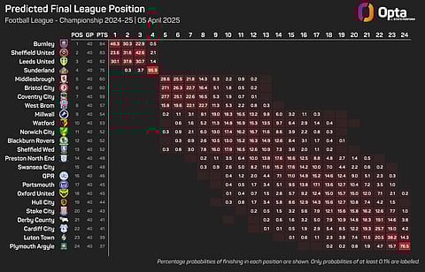 Plymouth, Luton and Cardiff City make up the bottom three, with Derby outside the relegation zone on goal difference, with Stoke City and Hull coming next in the table.