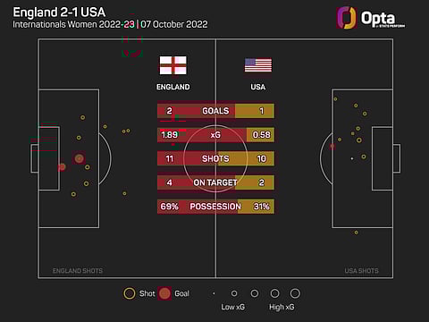 It has been a mixed bag across their last three games – they drew 0-0 with Sweden, lost 4-3 to Germany and then beat South Africa 2-1. In that defeat to Germany, England managed 2.4 expected goals (xG) – the same total as Germany accumulated.