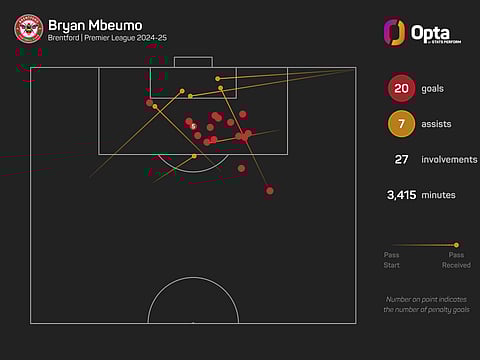 Mbeumo netted 20 goals and provided seven assists in 38 Premier League appearances last season, only being outscored by Mohamed Salah (29), Alexander Isak (23) and Erling Haaland (22).