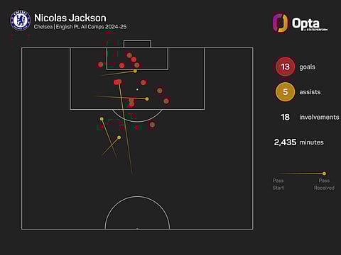 Since Jackson's arrival at Chelsea, only Cole Palmer (71) has registered more goal involvements than the Senegal international (42).