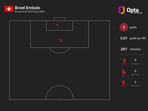 Breel Embolo was a shining light for Murat Yakin's side, scoring his fifth goal at a major tournament for Switzerland, a tally only bettered by Xherdan Shaqiri (10) and Josef Hugi (six).