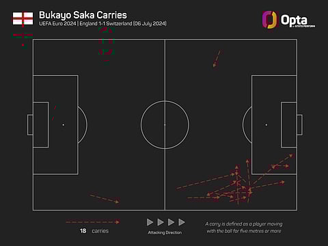 Saka's 11th international goal saw him become only the third Arsenal player to score for England at the Euros, after Tony Adams in 1988 and Theo Walcott in 2012.