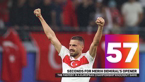 Demiral needed just 57 seconds to open the scoring, the fastest goal in Euros knockout history and the second earliest in the entire competition ever, to help the Crescent Stars grab another world record.