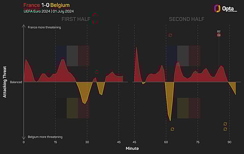 Kevin De Bruyne and Romelu Lukaku went close at the other end, but in truth, Belgium did not carve out many clear-cut chances.