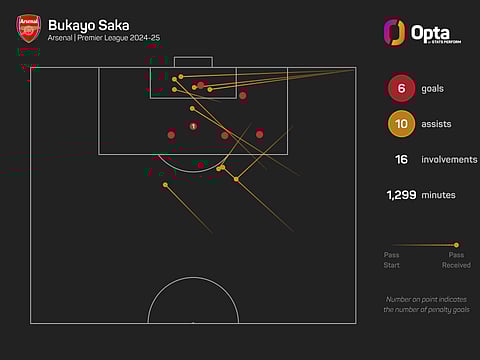 Saka wasted no time in making an impact following his return from injury, scoring Arsenal's second goal in their midweek victory over Fulham.