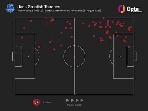 And they were on show as Grealish teed up both of Everton's goals in the Toffees' 2-0 win over Brighton in their first league game at Hill Dickinson Stadium.