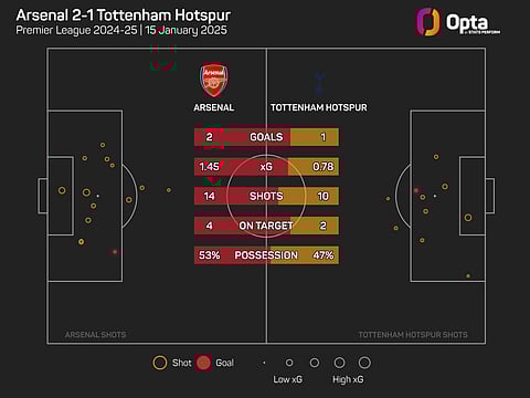 Tottenham slumped to a 2-1 defeat at Arsenal in Wednesday's north London derby – their fifth straight Premier League game without a victory.