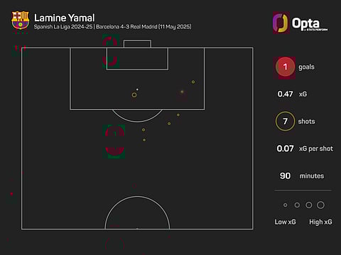 Yamal, alongside Pedri, Raphinha and Ferran Torres, also created three chances, a joint-game-high total alongside Madrid's Vinicius Junior.