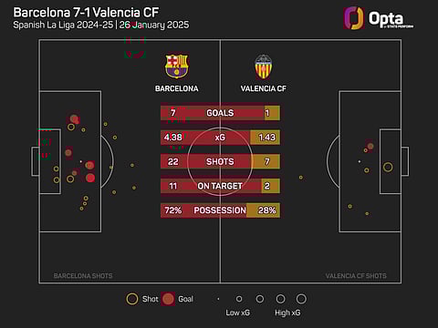 Hugo Duro grabbed a consolation for Valencia just before the hour, but the hosts assumed control with substitute Robert Lewandowski powering home his side's sixth goal.