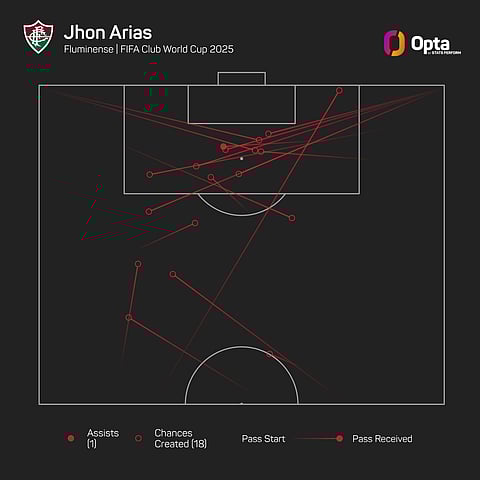 The Colombian created more chances (18) than any other player in the competition, six of which came against Ulsan Hyundai in their group-stage clash. Arias also scored a stunning free-kick in that match, which Fluminense won 4-2.