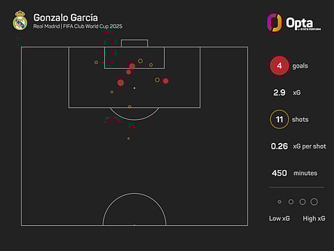 Of those four players, Garcia also had the lowest xG total with 2.88, giving him an overperformance of 1.12, while he also had the fewest shots (11).