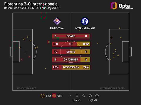 The loss was all the more surprising given Fiorentina's situation. Six players who were on the bench in the original fixture have since left the club, and because of the Serie A rules, they could not field any of their new signings.