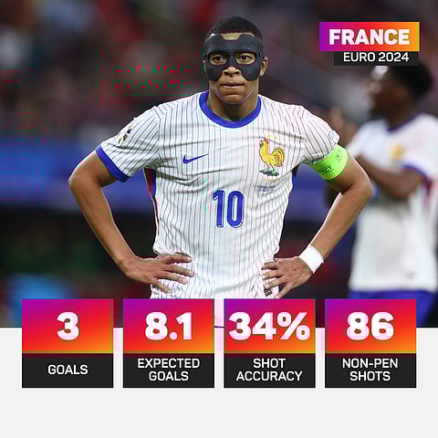France's struggles in attack can be at least partly attributed to Mbappe's disrupted tournament. He missed Les Bleus' second group game after suffering a broken nose in their opener and has struggled for form since returning to the team.