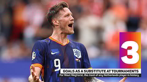 Weghorst's winner against Poland came with his first touch after coming on as an 81st-minute substitute and was his fourth goal at a major tournament (World Cup/Euros).
