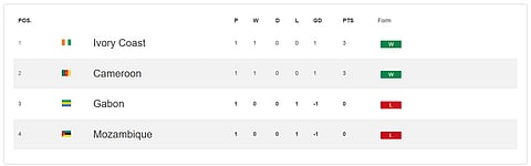 With Ivory Coast and Cameroon registering victories over Mozambique and Gabon, respectively in their campaign openers, the two teams are in the lead in Group F with three points apiece. The winner of today's clash between Mozambique and Gabon, thus will stay alive, while the other side will be eliminated from the competition.