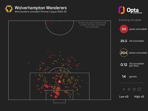 Wolves have now conceded 36 goals in 14 Premier League matches this season, their most at this stage of a top-flight campaign since 1964-65 (40), when they were relegated.