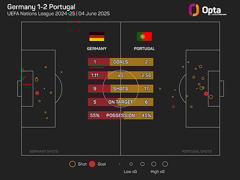 Portugal improved massively after half-time, having only registered four shots (one on target) to Germany's seven (four on target) in the opening period.