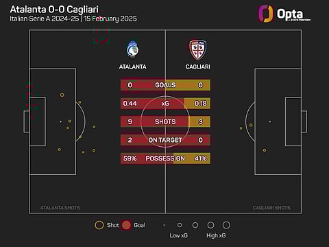 During the contest at Gewiss Stadium, Atalanta were only able to register nine shots, two of which were on target, ending with an expected goals (xG) total of just 0.44.