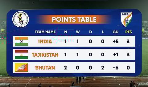 Not only do India climb to the top of the standings, they also open up a healthy +5 goal difference. A draw in their next match against Tajikistan on March 31 would thus be enough for the Blue Colts to clinch the championship. Bhutan, meanwhile are out of podium contention with consecutive losses.
