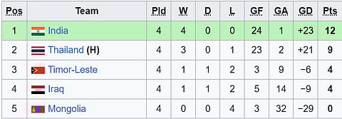 This is how Group B looks like at the moment. India and Thailand are tied in all aspects. So, today's winner goes through, and the other three teams are knocked out. If the match ends as a tie, we will go to penalties.