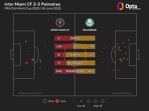 Miami were on course to finish top of Group A as they held a two-goal lead over Palmeiras in their final group game on Monday, but the Brazilian team mounted a late comeback to draw 2-2 at Hard Rock Stadium.