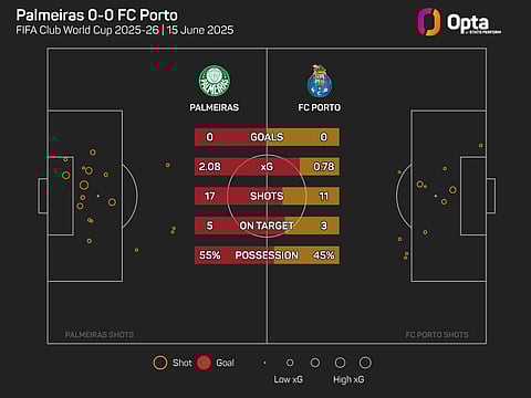 Palmeiras were the dominant side, creating chances worth 2.1 expected goals. That is the highest xG conceded by a side in a Club World Cup game in which they also kept a clean sheet, with Porto's stand-in goalkeeper Claudio Ramos making a string of fine stops as he deputised for the injured Diogo Costa.