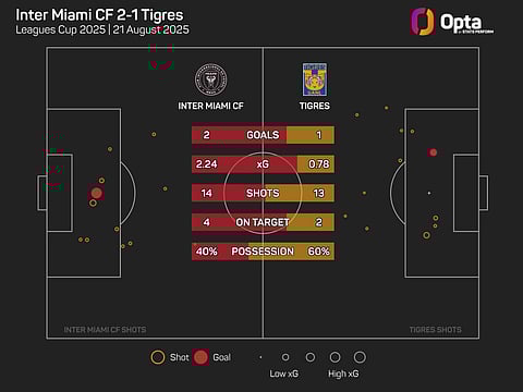 - MLS side Inter Miami eventually beat Tigres UANL of Mexico 2-1 at Chase Stadium
