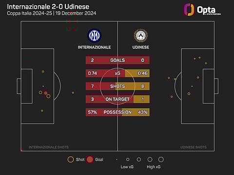 A heavily rotated Inter side dominated proceedings and opened the scoring on the half-hour mark when Udinese gave the ball away in midfield. Mehdi Taremi pounced to find Marko Arnautovic, who finished low into the net.
