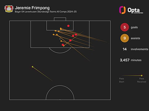 Frimpong played an integral role in helping Leverkusen to their first Bundesliga title in 2023-24 and made 53 appearances in all competitions as they finished second in 2024-25.