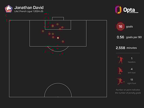In Ligue last season, no player scored more Opta-defined 'big' chances than David (16, level with Ousmane Dembele). He had 32 such opportunities overall, giving him a 50% conversion rate.