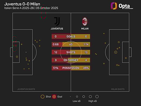 Milan generated an expected goals (xG) total of 1.74 from their 13 attempts compared to Juventus' 0.68 from their 12 shots