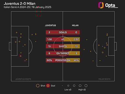 Milan managed just three attempts on Michele Di Gregorio's goal, ending the contest with an expected goals (xG) total of 0.97 at the Allianz Stadium.