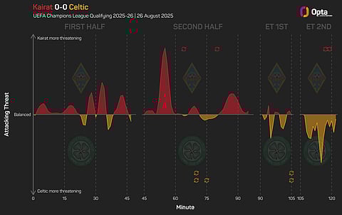 Celtic and Kairat failed to score, with both legs finishing 0-0, before Celtic lost 3-2 in the shootout