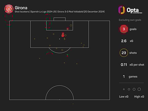And Girona were worthy of their win. They accumulated an expected goals (xG) total of 2.58 from their 23 shots, restricting their opponents to just one shot in the contest.