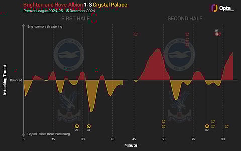 Brighton created chances worth an expected goals (xG) total of just 0.81 in this match, their lowest tally in a Premier League fixture so far this season, and the Seagulls' head coach rued his players' profligacy after suffering their first home defeat of the campaign.
