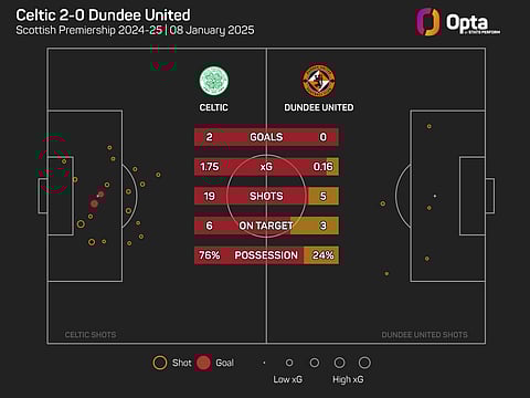 Celtic, however, are now unbeaten in 21 meetings with Dundee United in all competitions (won 16, drawn five) since a 2-1 league defeat in December 2014 under Ronny Deila.