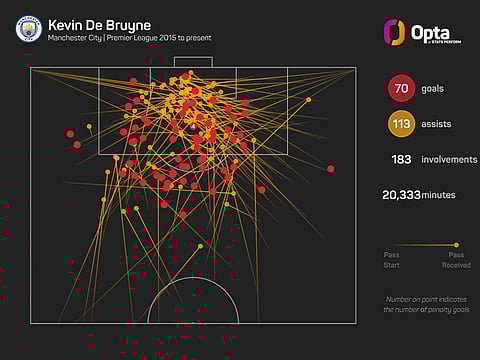 City have now lost just one of their last 35 league games with the Belgian in their starting lineup (28 wins, six draws).