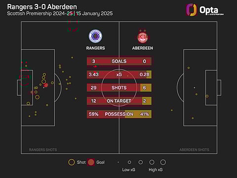 It could easily have been more though, as Rangers had 29 shots, hitting the target with 12 of those, as they generated 3.43 expected goals (xG).
