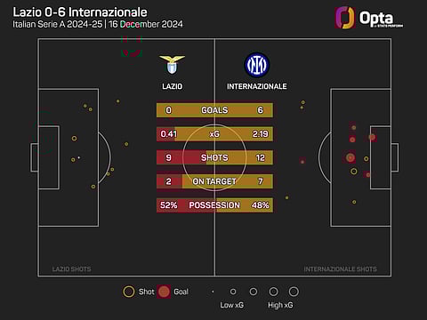 Monday's defeat was the first Lazio had ever suffered by six goals on their own turf in Serie A, while Inter have now netted 47 times on their travels in the Italian top flight in 2024.