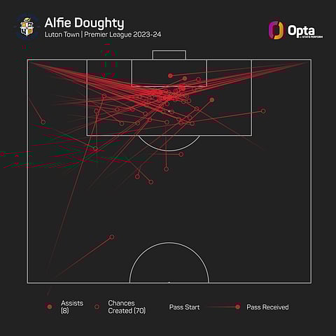 Doughty registered two goals and eight assists and was one of many players expected to depart Kenilworth Road this transfer window, though for now he has stayed put.