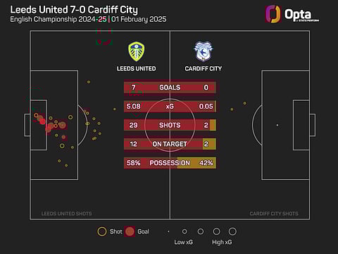 Leeds United maintained their two-point lead at the Championship summit as a rampant Elland Road display earned them a 7-0 victory over Cardiff City. (More Football News)