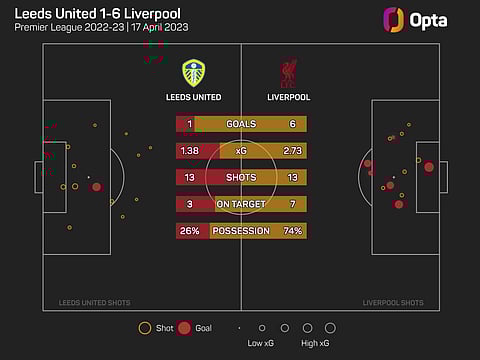 The Reds’ last two league victories against Leeds have been by 6-0 and 6-1 scorelines. Only Arsenal have scored six or more goals against an opponent in three different Premier League games before (versus Blackburn Rovers).