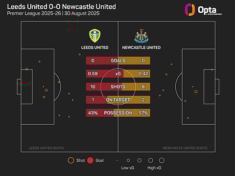 They also combined to create just 1.01 expected goals (xG), with Leeds tallying 0.59 and Newcastle 0.42.