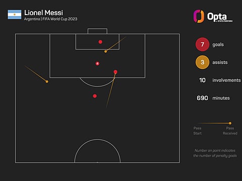 He scored seven goals and registered three assists in the 2022 edition as the Albiceleste lifted the trophy. Messi has also led Argentina to consecutive Copa America titles in 2021 and 2024.