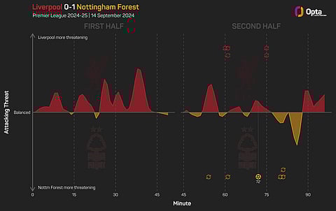 The Reds boasted a 69.6% possession share but only marginally beat Forest's 56 final-third entries with 70 of their own, leaving Slot to bemoan their lethargic play in possession.