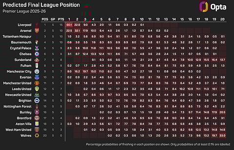Before the start of the season, Chelsea were given an outside chance of winning the title by the Opta supercomputer, as they won 8.3% of the pre-season simulations.